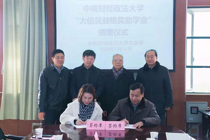 本会理事长陈晓溪与中南财经政法大学党委书记栾永玉——举行捐资助学签字(合同)仪式。